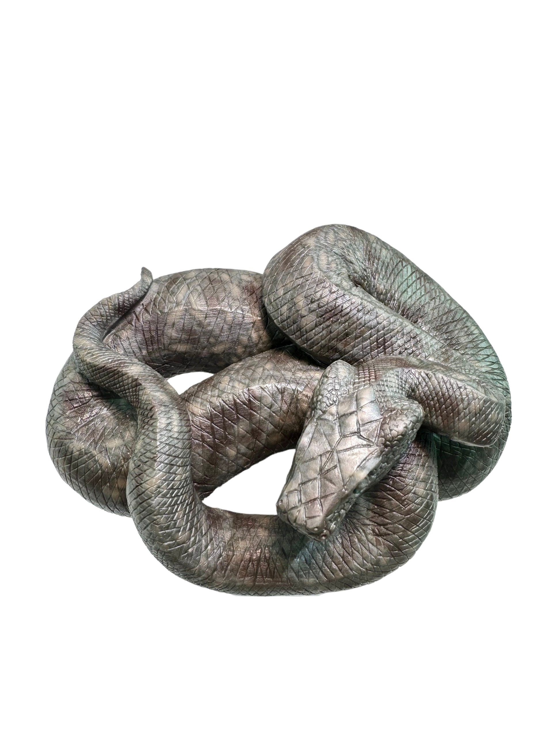 This highly detailed, realistic appearance snake sculpture is craved by our jade expert artist. The snake is coiled in a striking pose, it’s head raised and already to attack. This sculpture is made of serpentine, which is a jade named after its resemblance to the skin of a snake.