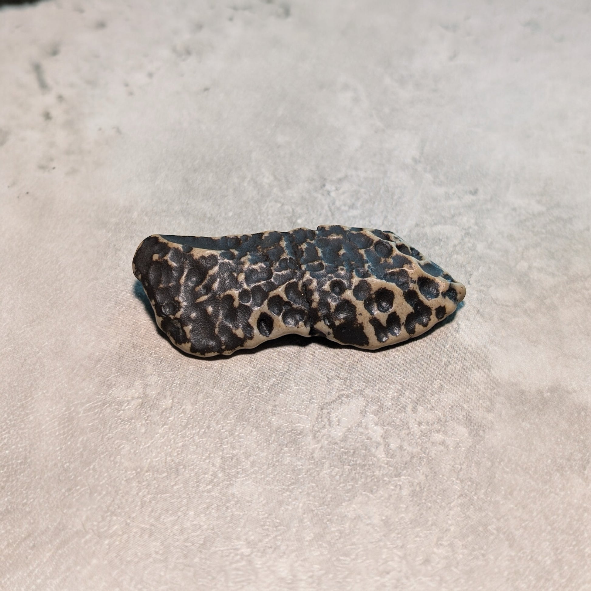 This mudstone is found in Xinjiang, China. It is characterized by its unique and intricate patterns, reminiscent of old leather. These patterns are formed through the weathering and erosion of the mudstone, gradually revealing the underlying layers of rock. This patterned mudstone can be used for decorative objects or made into pendants.
