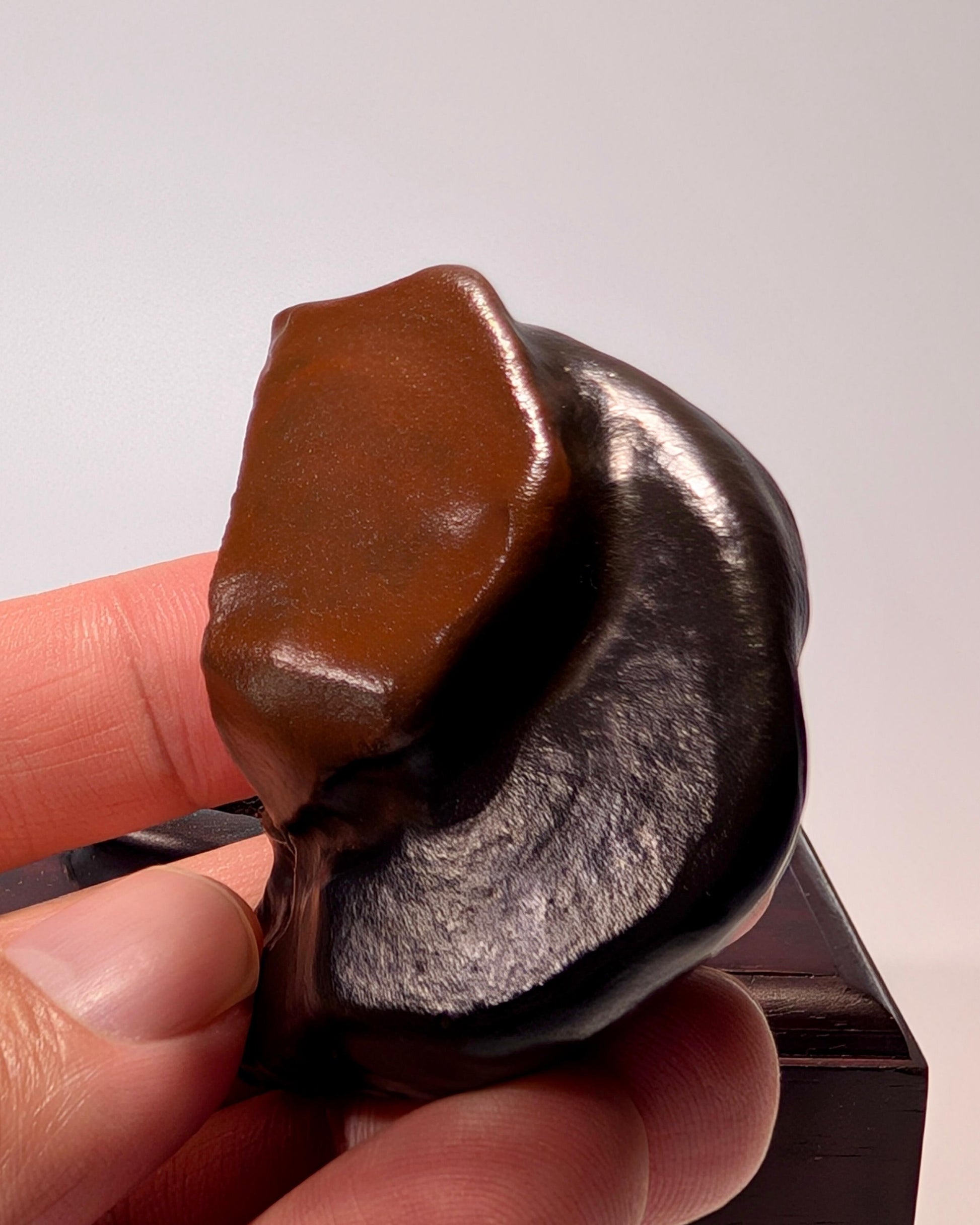 This exceptional Gobi Desert stone, primarily composed of jasper, showcases a captivating blend of red and brownish-green hues. The stone’s natural form reveals a unique shape where the red jasper resembles a face, while the greenish section suggests a torso, creating an intriguing, organic representation of the human form. This piece is a testament to nature's artistry, shaped over time by the relentless forces of desert winds and sand, resulting in exquisite natural weathering.